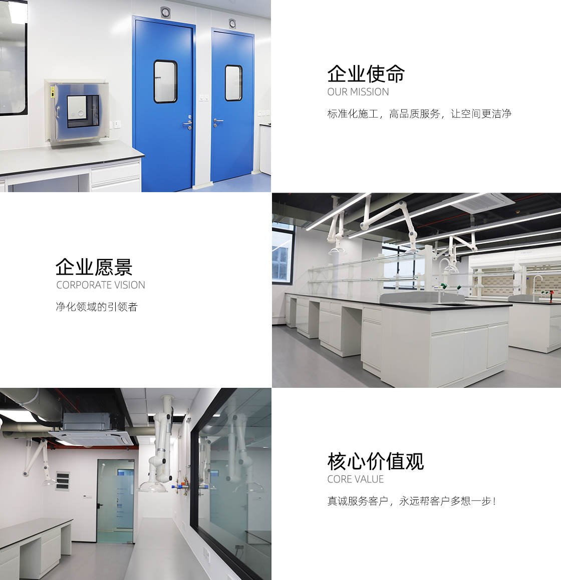 上海優(yōu)鴻裝飾設(shè)計工程有限公司創(chuàng)建于2008年,是一家從規(guī)劃設(shè)計到竣工交付使用為一體的EPC總包服務(wù)機(jī)構(gòu),下轄優(yōu)鴻凈化工程公司是專業(yè)從事凈化領(lǐng)域的設(shè)計施工及整體解決方案提供商,提供凈化工程裝修,潔凈室設(shè)計,實(shí)驗(yàn)室設(shè)計-施工安裝-檢測驗(yàn)收-運(yùn)行維護(hù)全方位總包服務(wù),集建筑裝飾、工藝系統(tǒng)、機(jī)電安裝、信息智能化、環(huán)保工程、實(shí)驗(yàn)家具于一體。我們一直致力于凈化工程及無塵室產(chǎn)品的設(shè)計施工與研究,及時準(zhǔn)確掌握潔凈室國際規(guī)范與國家規(guī)范的前沿要求,服務(wù)于全國客戶,提供優(yōu)質(zhì)的凈化工程施工服務(wù)。